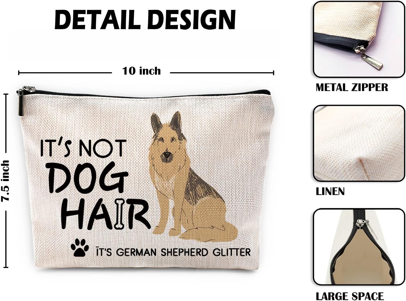 Sufamb It's Not Dog Hair It's German Shepherd Glitter Makeup Bag, Funny Dog Lovers Cosmetic Pouch for Women Girls, Christmas Birthday Gifts for German Shepherd Moms Owners Women Girls